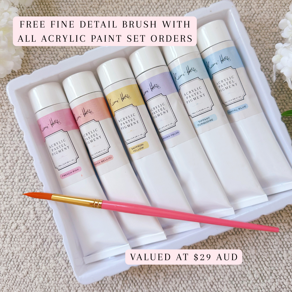 This set includes six of my must-have pastel pigments that will create beautiful tones of my favourite pastel shades. This is the ultimate paint set for lovers of acrylic painting and pastel tones.